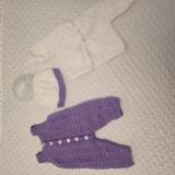 Wrap your little one or cherished doll in cosy, handmade warmth with this adorable 4-piece knitted set, crafted with love and delicate lacy details: